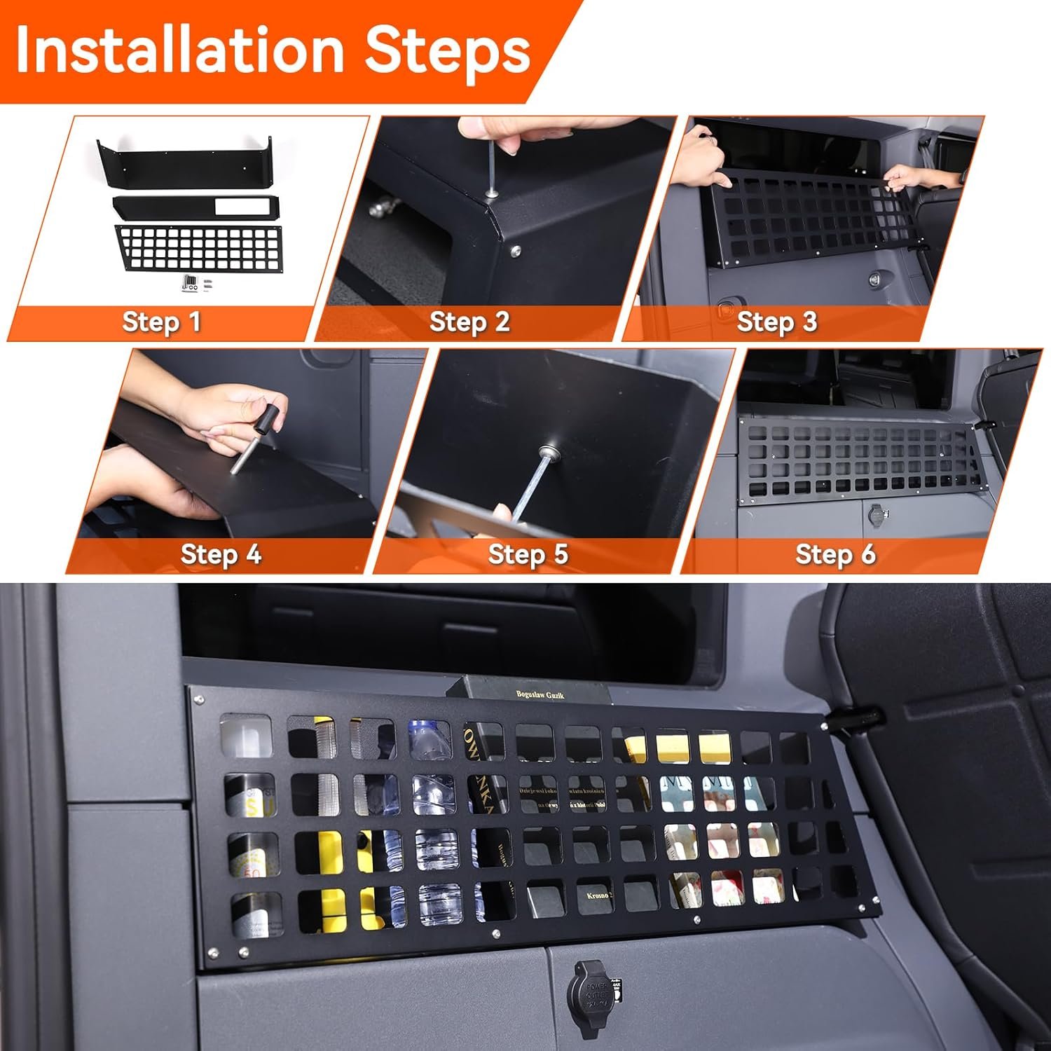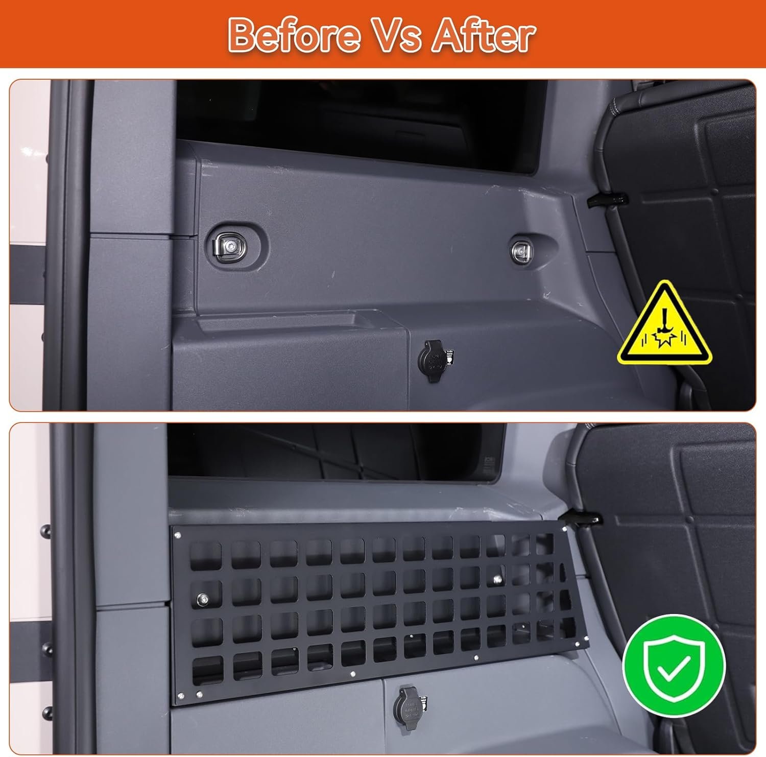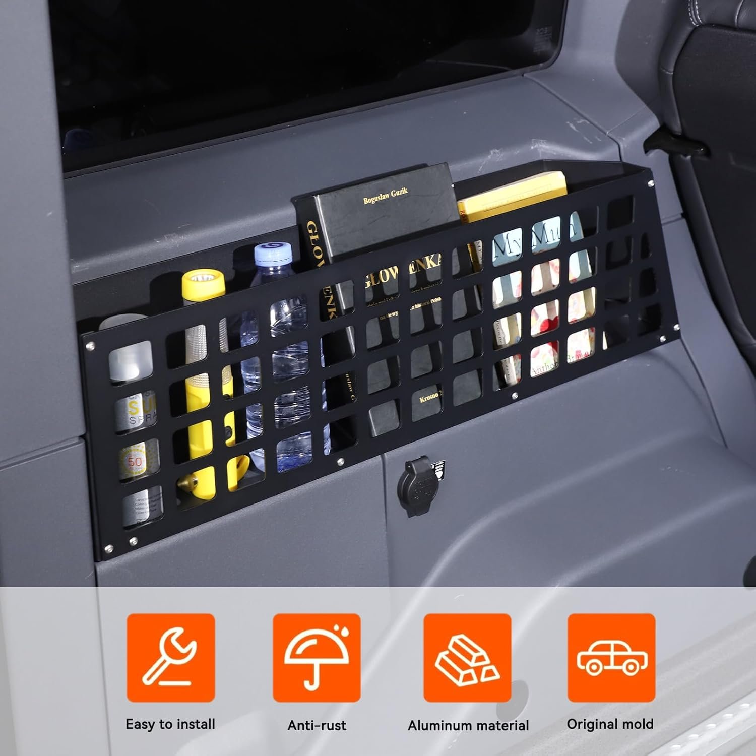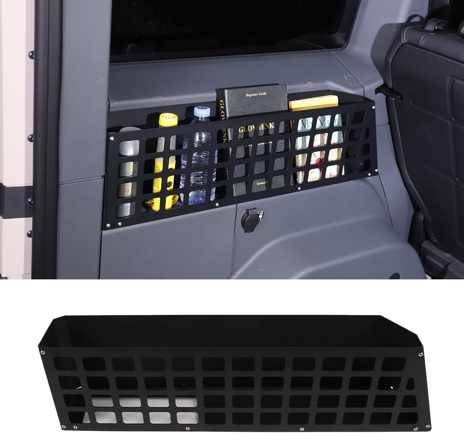 The design of the basket allows it to function as a hanging point. The structure likely features slots or rails (similar to a MOLLE panel) where you can clip carabiners or attach pouches. This prevents items from rattling. A secure load is a quiet load, and more importantly, a safe load. In the event of sudden braking or an accident, you do not want heavy tools flying through the cabin. Strapping them to this rack keeps them secure.